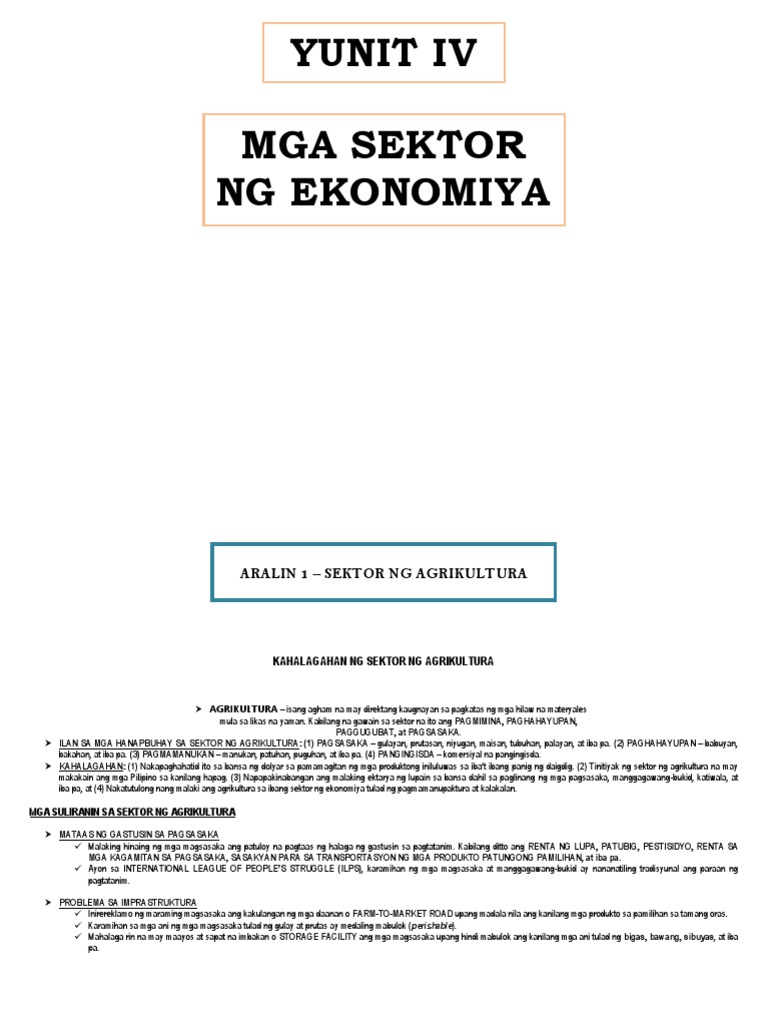 Curriculum Guide Konsepto at Palatandaan ng Pambansang Kaunlaran Pambansang Kaunluran Mga palatandaan ng Pambansang kaunlaran Ibat ibang gampanin ng mamamayang Pilipino upang makatulong sa pambansang kaunlaran Sama-sama Pagkilos para sa Pambansang Kaunlaran Sektor ng Agrikultura Ang bahaging ginagampanan ng agrikultura. Sila ay parehong nagbibigay ng oportunidad sa mga mamamayan na makapagtrabaho at matustusan ang pangangailangan ng kani kanilang pamilya. Nagpapasok ng dolyar sa bansa 2.