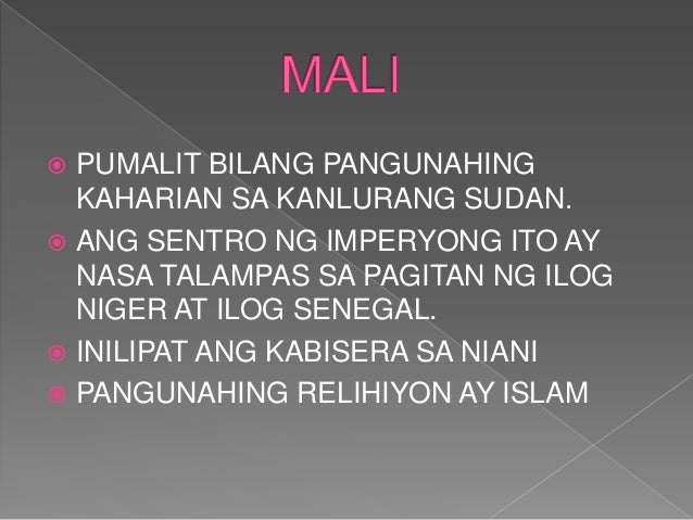 MALI- tagapagmana ng GHANA. Most of the Songhai became clients of the Mali empire until 1435 ce. Dugtungan ang kasunod na pangungusap na nasa loob ng kahon.