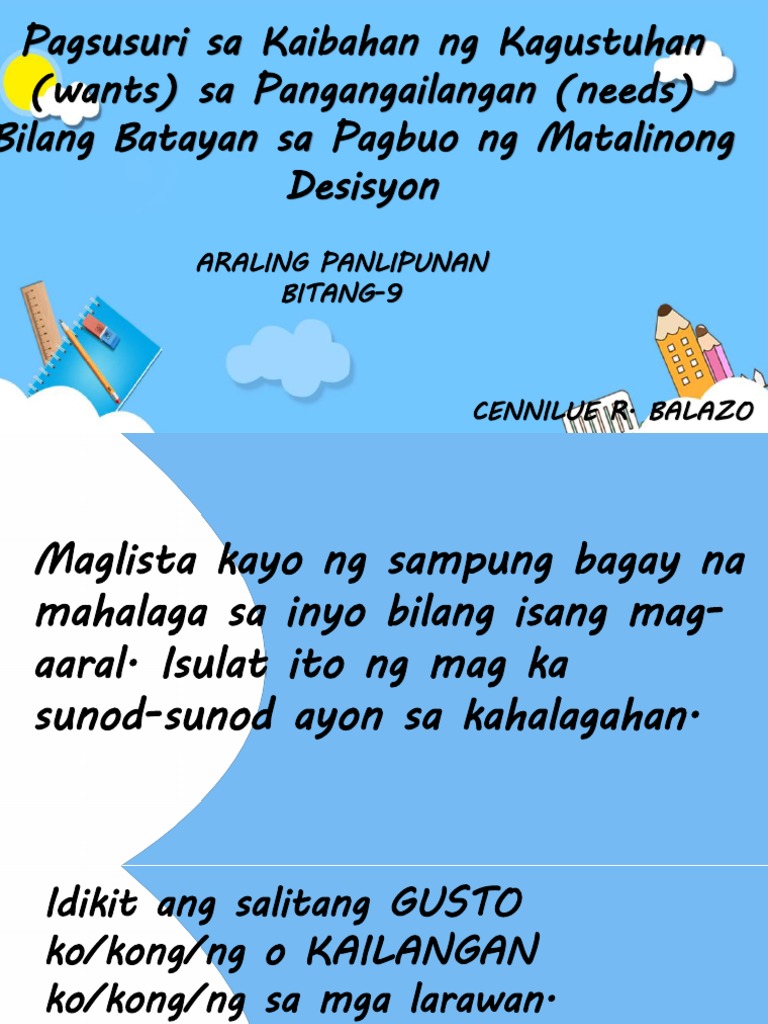 Pagkakaiba Ng Kailangan At Gusto Ko