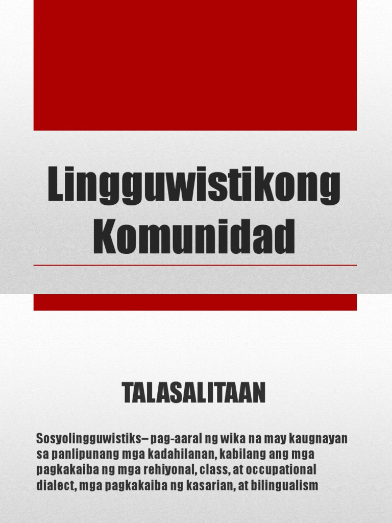Filipino 28102019 1729 pauyonlor. View PAGSUSURI SA MGA LINGGWISTIKO AT KULTURAL NA GAMITpptx from COED 7 at University Of Cabuyao Pamantasan ng Cabuyao. Paano susuriin at isaalang-alang ang mga lingguwistiko at kultural na pagkakaiba-iba sa lipunang Pilipino na ipinakikita sa mga pelikula atdula.