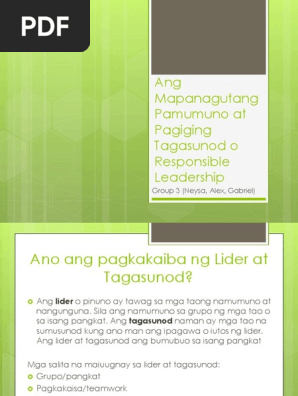 Ang Mapanagutang Pamumuno At Pagiging Tagasunod O Responsible Pdf