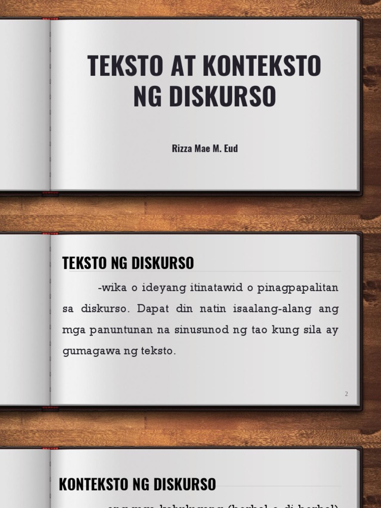Uri ng kontekstong pandiskurso May mga uri ang konteksto ng diskurso tulad ng. Ang ipinapanukalang dulog ay nagpapatingkad sa ugnayan ng wika at kulturang Filipino. HERE are many translated example sentences containing TEKSTO AT KONTEKSTO - tagalog-english translations and search engine for tagalog translations.