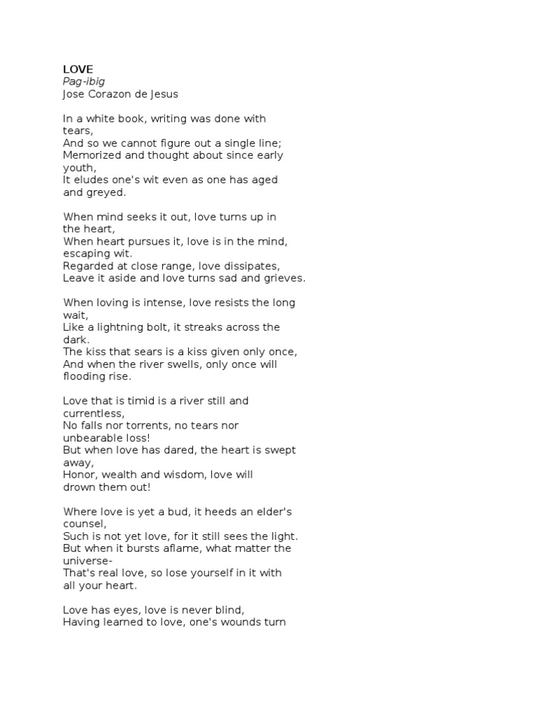 Tula Ni Jose Corazon De Jesus Pag Ibig