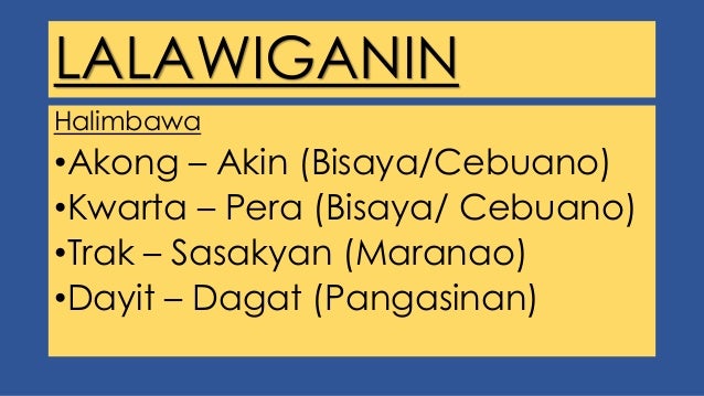 Wikang pampanitikan examples. Want this question answered. Gumamit kami ng batubalani para sa aming eksperimento sa agham. Ang bawat wikang lalawiganin ay may magkakaibang punto bigkas.