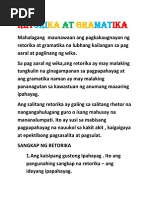 Ang Gramatika At Retorika Docx Ang Gramatika At Retorika Dalawa Ang Masasabing Sangay Ng Mabisang Pag Aaral Ng Karunungang Pangwika Ang Gramatika At Course Hero